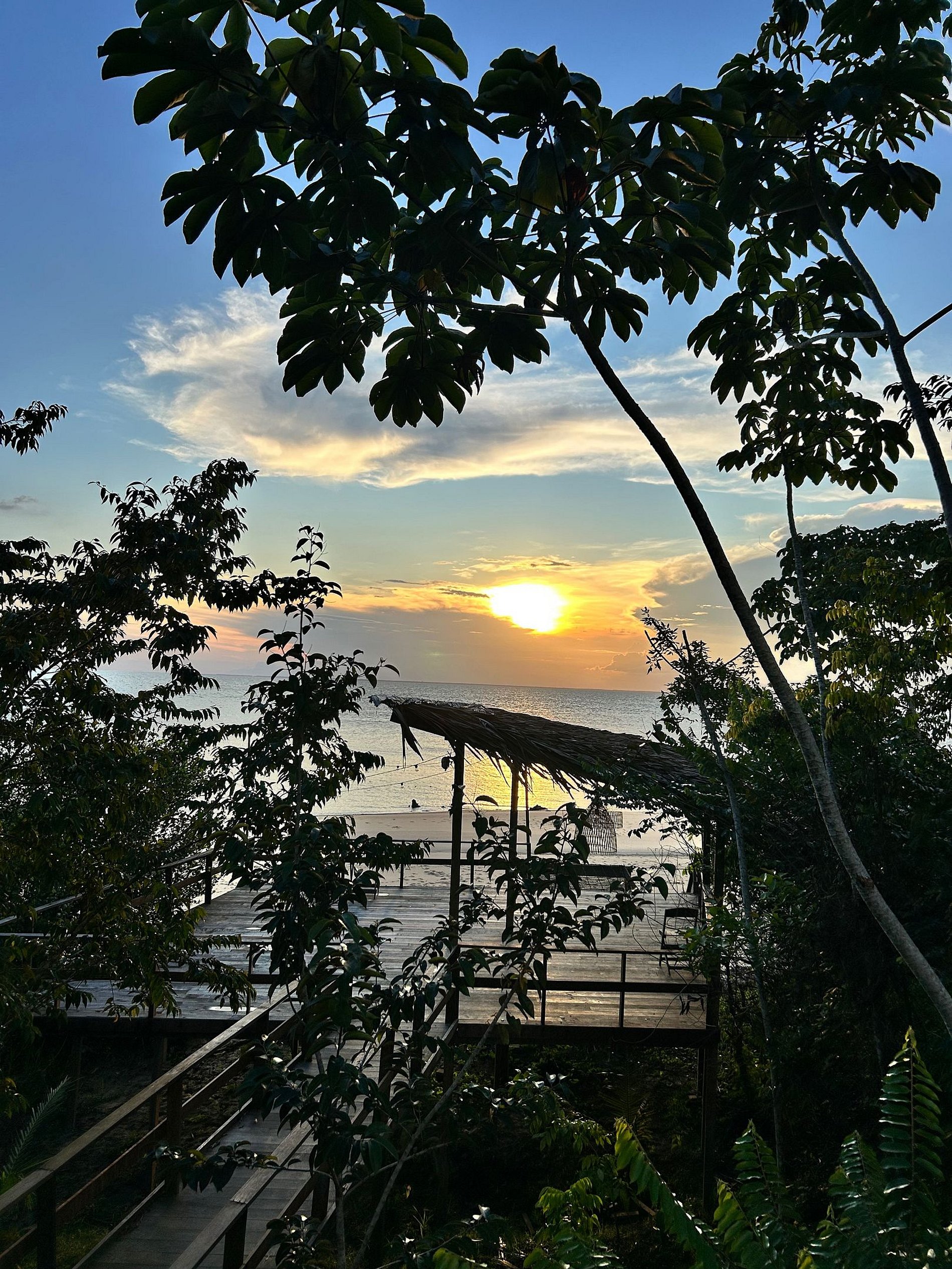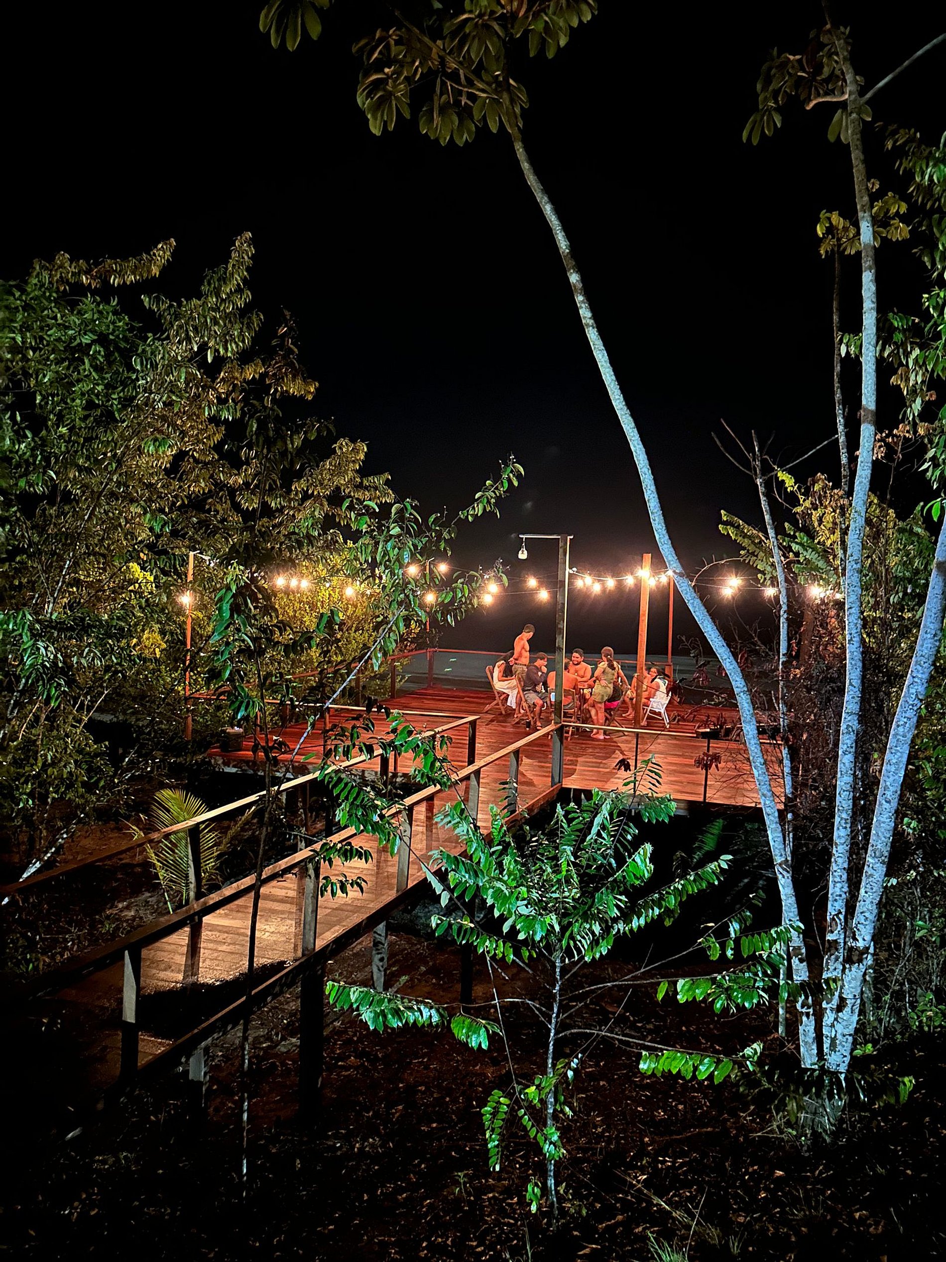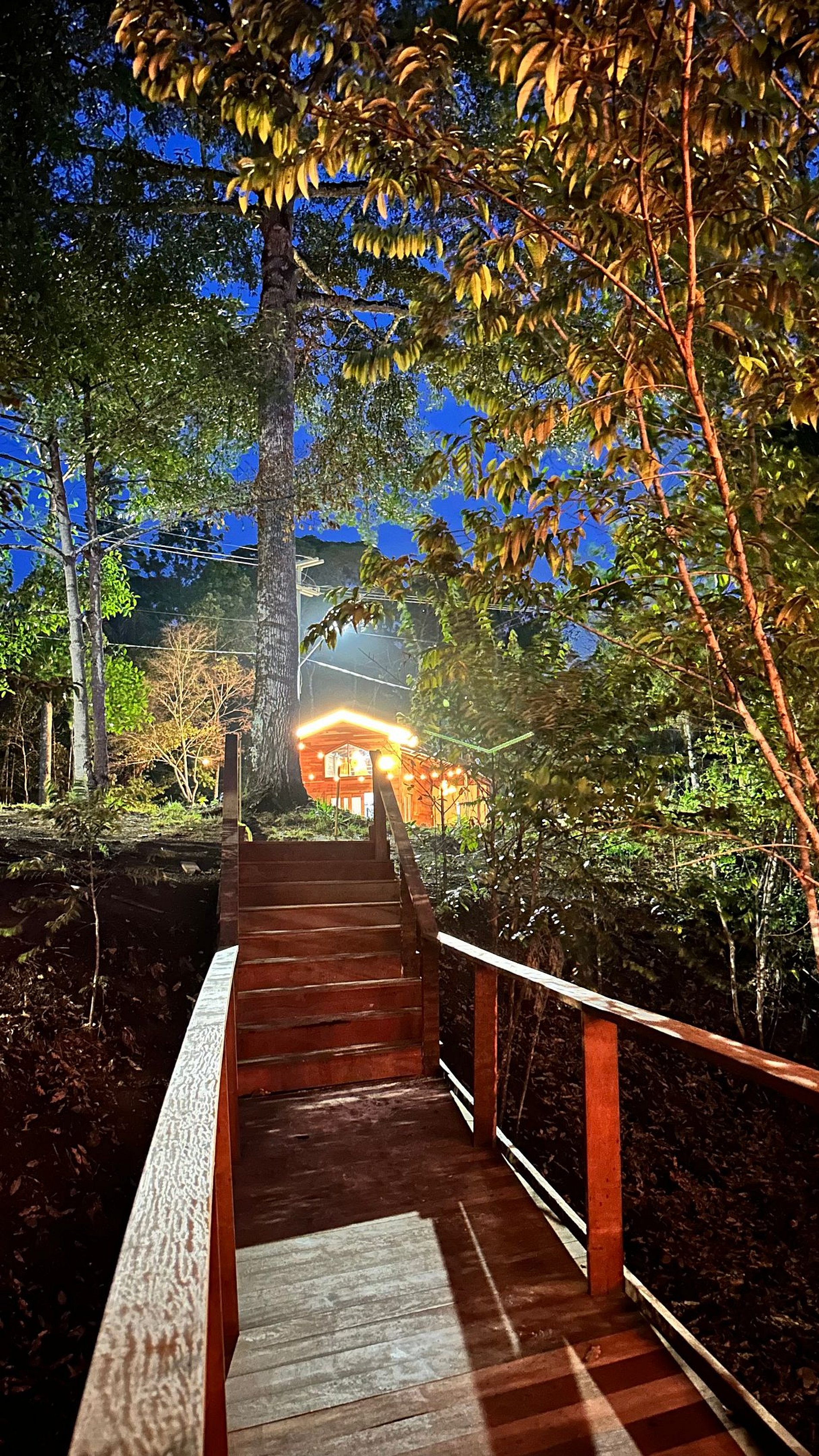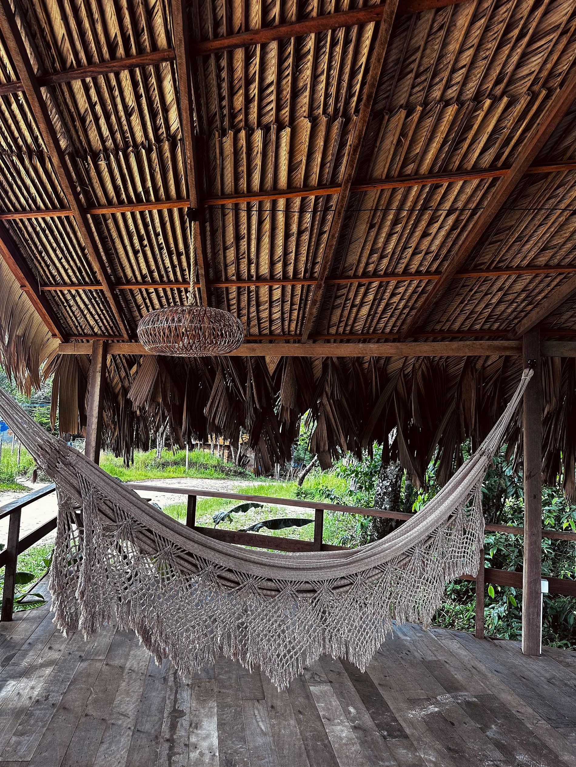 O chalé é muito charmoso, tem uma decoração boho minimalista, no estilo rústico contemporâneo, sem esquecer suas raízes amazônicas. Além de uma iluminação quente (opcional) para trazer mais conforto e sensação de relaxamento.