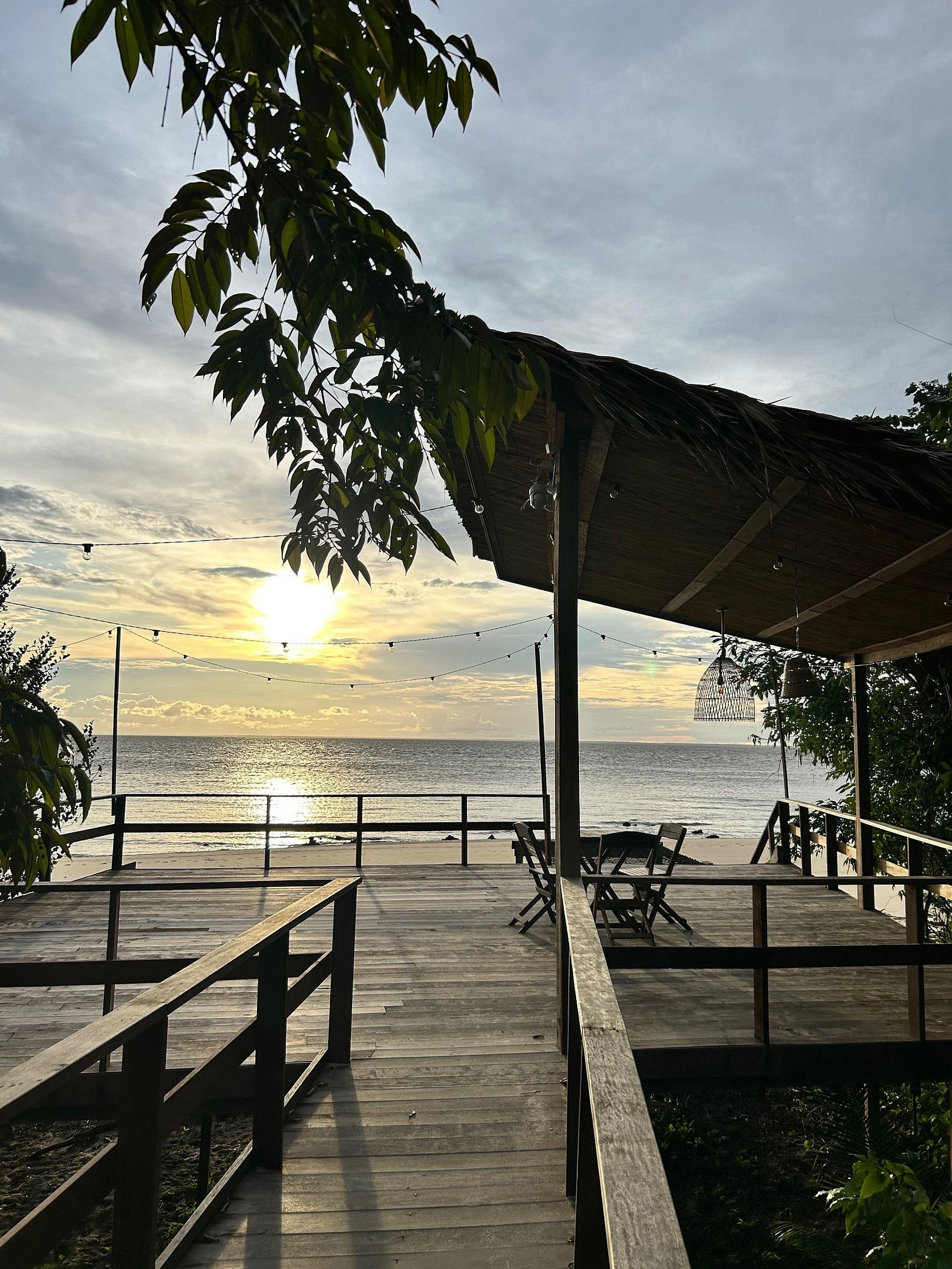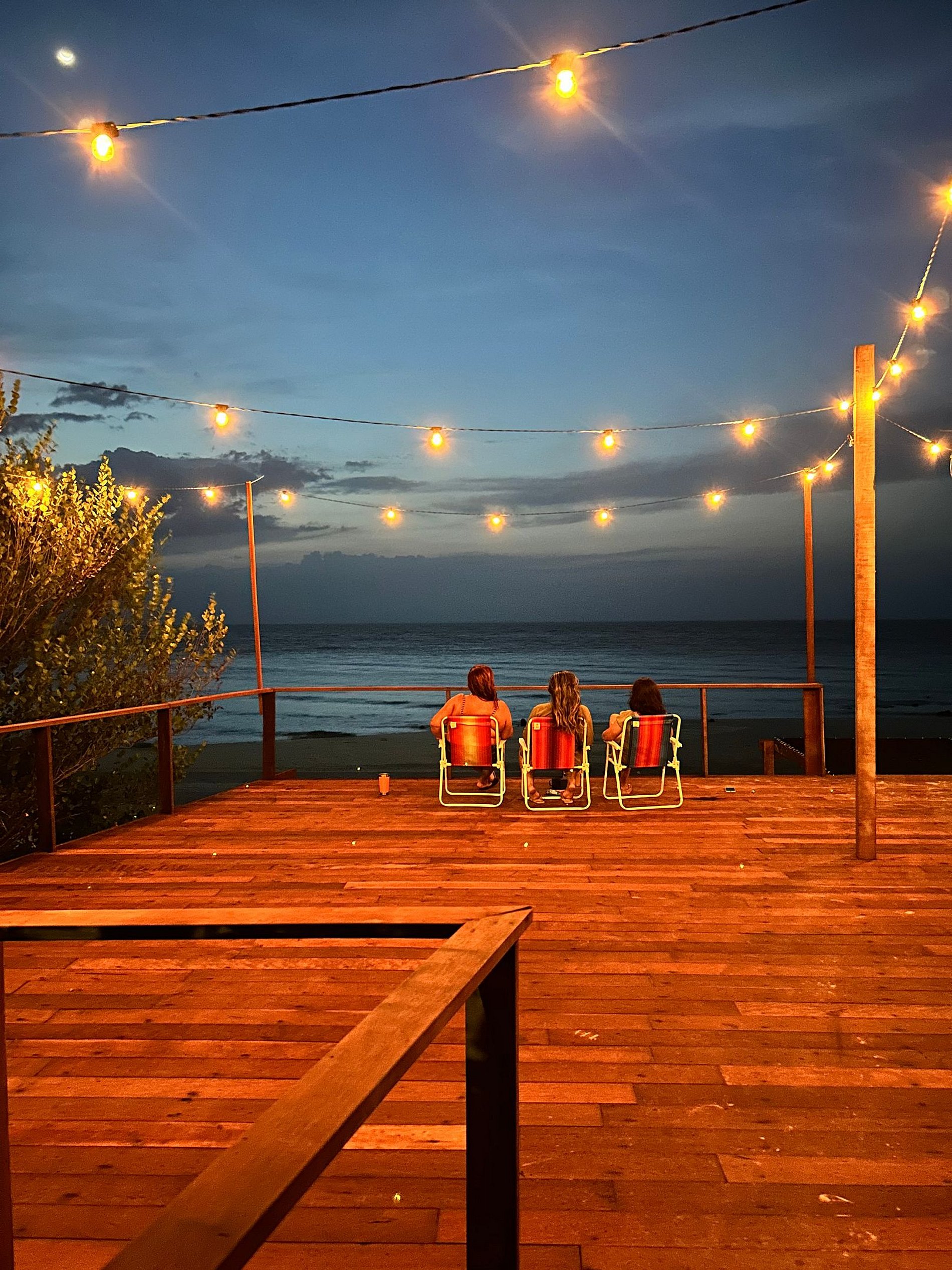 Temos uma área externa e dois decks de madeira de frente para a praia, com linda vegetação ao redor e com uma rede suspensa para você relaxar e apreciar o pôr do sol. É possível realizar eventos combinando com a anfitriã.